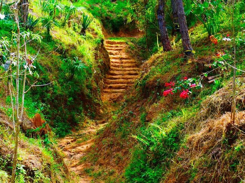 Los terrenos tienen numerosos senderos para caminar tanto a través del bosque salvaje preservado como de los jardines de exhibición.